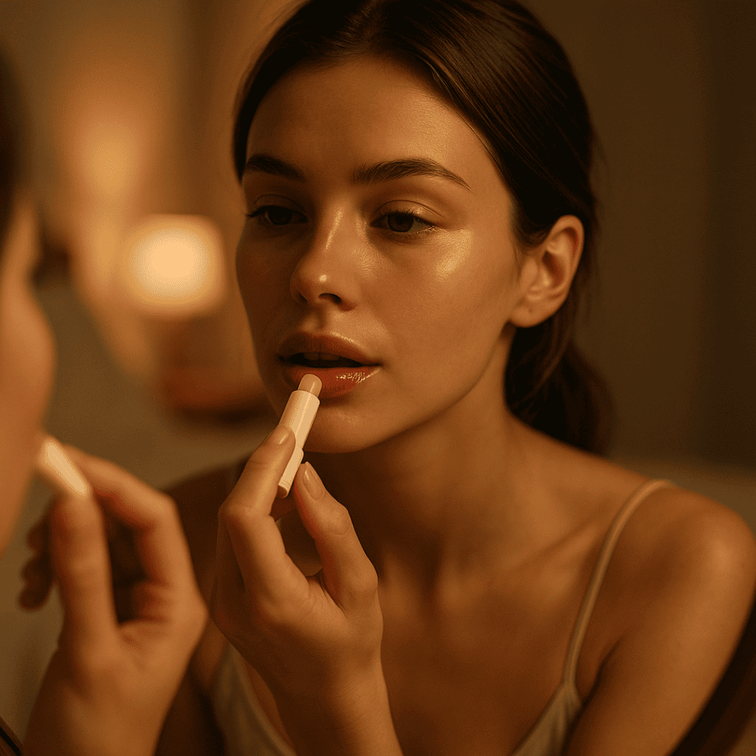 Aplica una pequeña cantidad sobre los labios limpios. Déjala actuar toda la noche o úsala durante el día para mantener la hidratación y el confort.