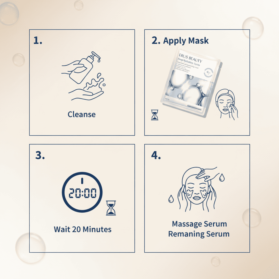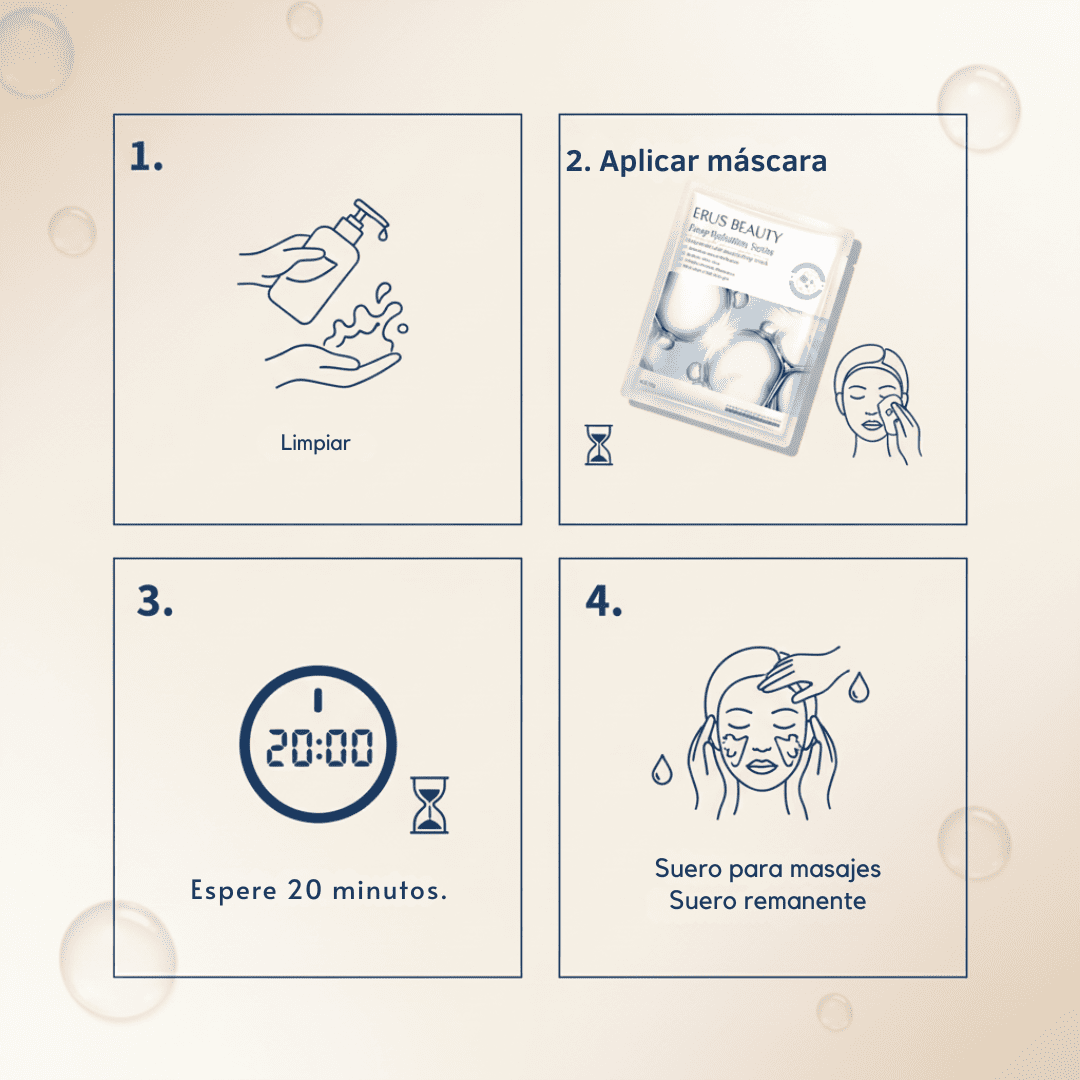 Hidrata intensamente, aporta efecto glow y suaviza líneas finas en 15–20 minutos. Apta para todo tipo de piel, ideal 1–2 veces por semana.